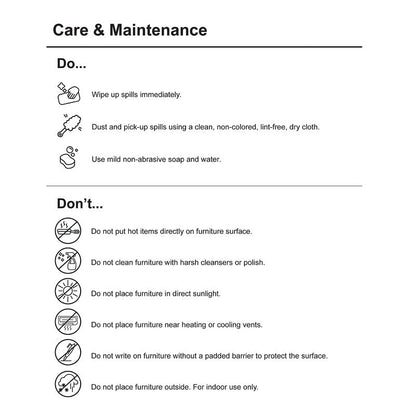 • Unique triangle shaped table top • MDF with wood veneer top • Plywood with wood veneer legs • Pecan wood finish • Assembly required, tools included • Do not place hot items directly on the tabletop • Use coasters, placemats or trivets to help prevent marks or stains